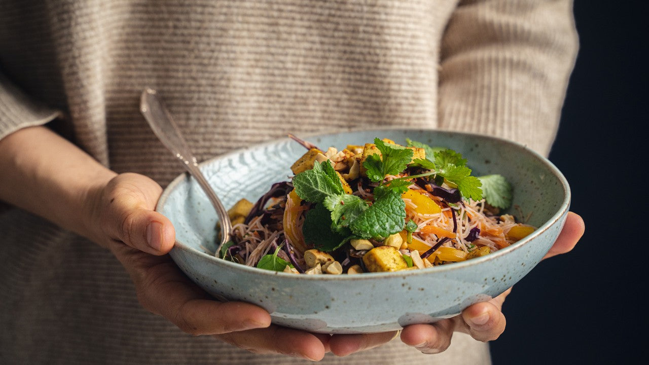 Asiatischer Nudelsalat mit Tofu und Koriander