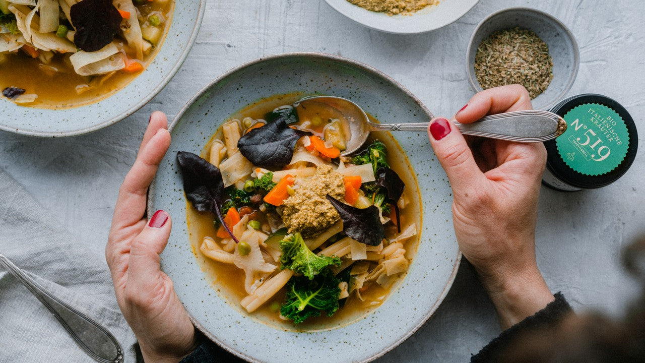 Minestrone ist allen Italien Liebhabern ein Begriff. Der Suppen-Klassiker aus Bella Italia gehört zu den ältesten Gerichten der italienischen Küche und ist fast genauso bekannt wie Pizza oder Spaghetti. Es gibt zahlreiche Rezeptvarianten, die sich nach Ländern und Regionen unterscheiden. Doch allen gemein ist das viele Saisongemüse, das traditionell als die wichtigste Zutat für eine köstlich mediterrane Minestrone gilt.