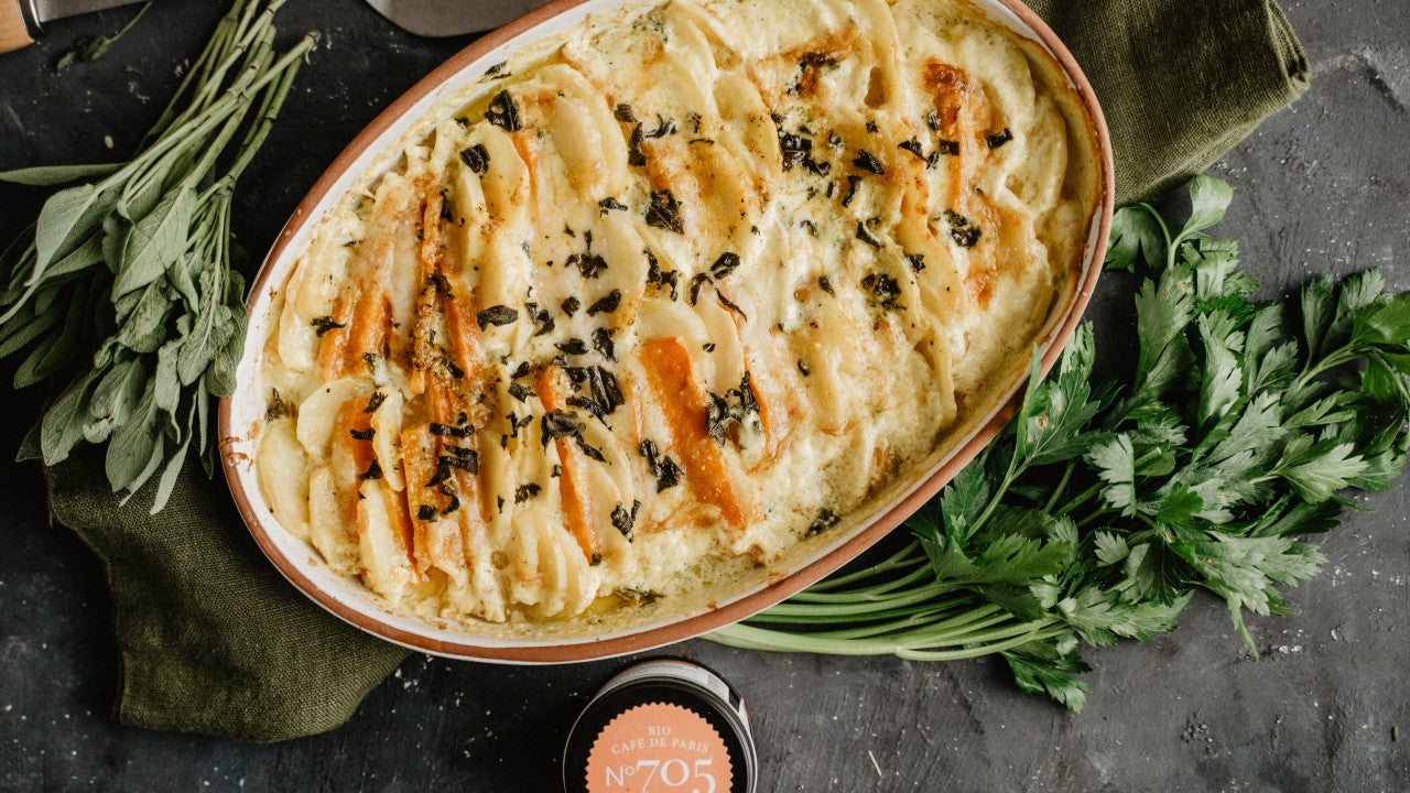Kartoffel-Kürbis-Gratin Rezept mit Café de Paris