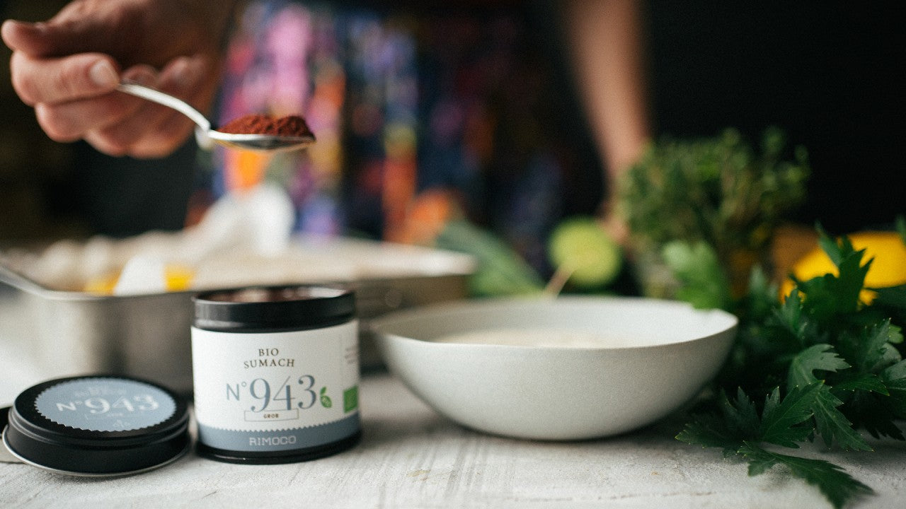 Für das Dressing Joghurt, Tahina, Zitronenabrieb und -saft cremig rühren. Mit Salz, Pfeffer und 2 EL Sumach abschmecken und ziehen lassen.