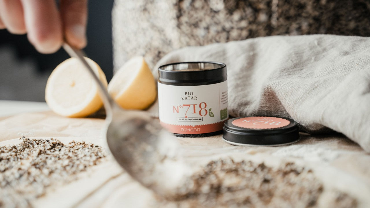 4 EL Zatar mit 5 EL Olivenöl mischen und etwas Abrieb einer Zitrone dazugeben.