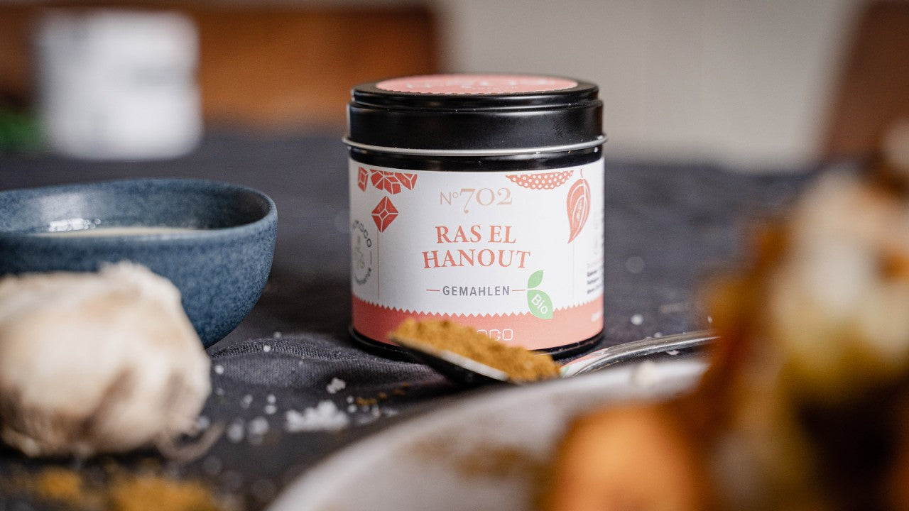 Blumenkohl in kleine Röschen teilen, Süßkartoffeln schälen und in mundgerechte Stücke schneiden. Kichererbsen abgießen und abwaschen. Das Gemüse in einer großen Schüssel mit Ras el Hanout, Zitronensaft und soviel Olivenöl, dass alles gut damit benetzt ist, vermischen und auf einem Backblech verteilen. Etwa 30 Minuten backen, bis das Gemüse noch leicht bissfest ist.