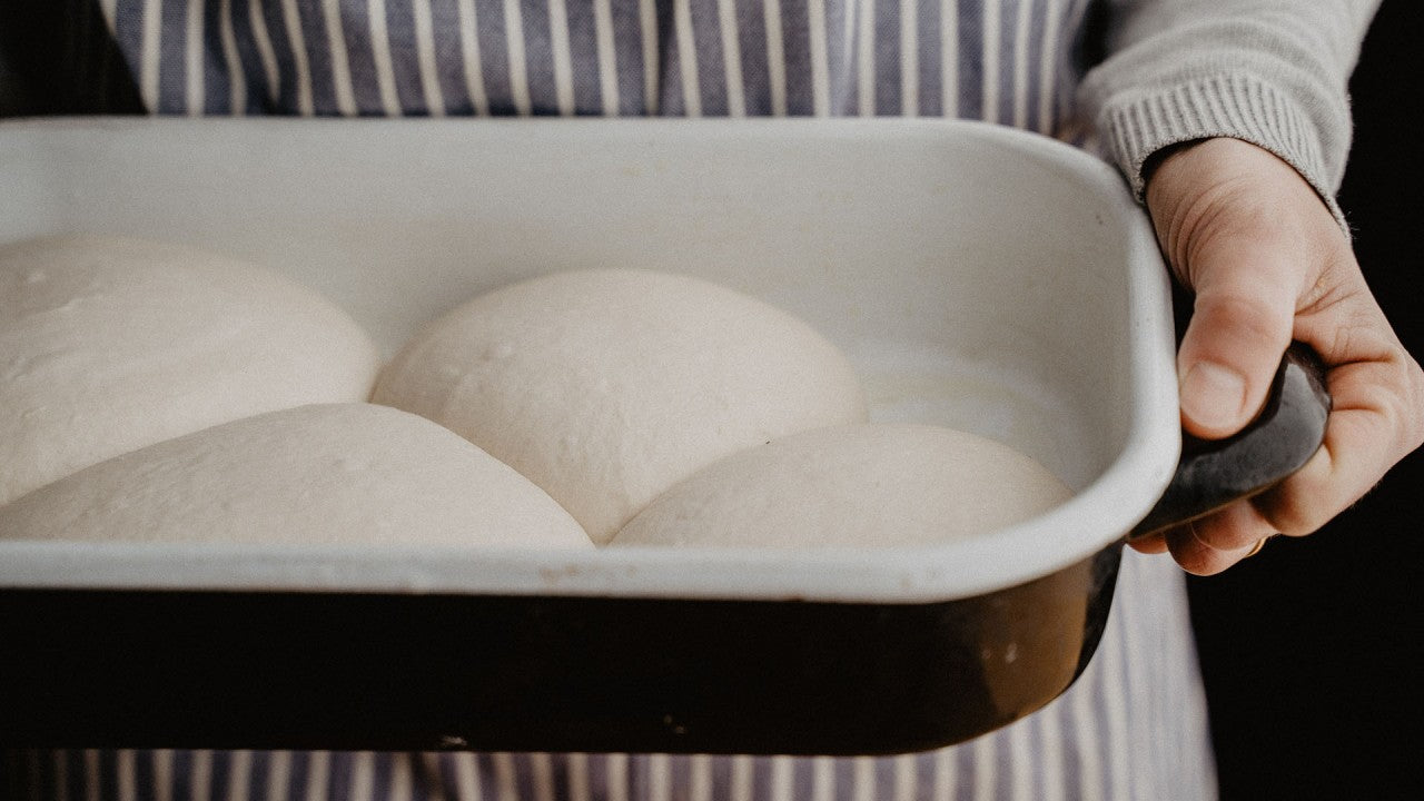 Den Hefeteig mit einem sauberen Geschirrtuch bedecken und entweder über Nacht im Kühlschrank oder eine Stunde bei Zimmertemperatur gehen lassen.