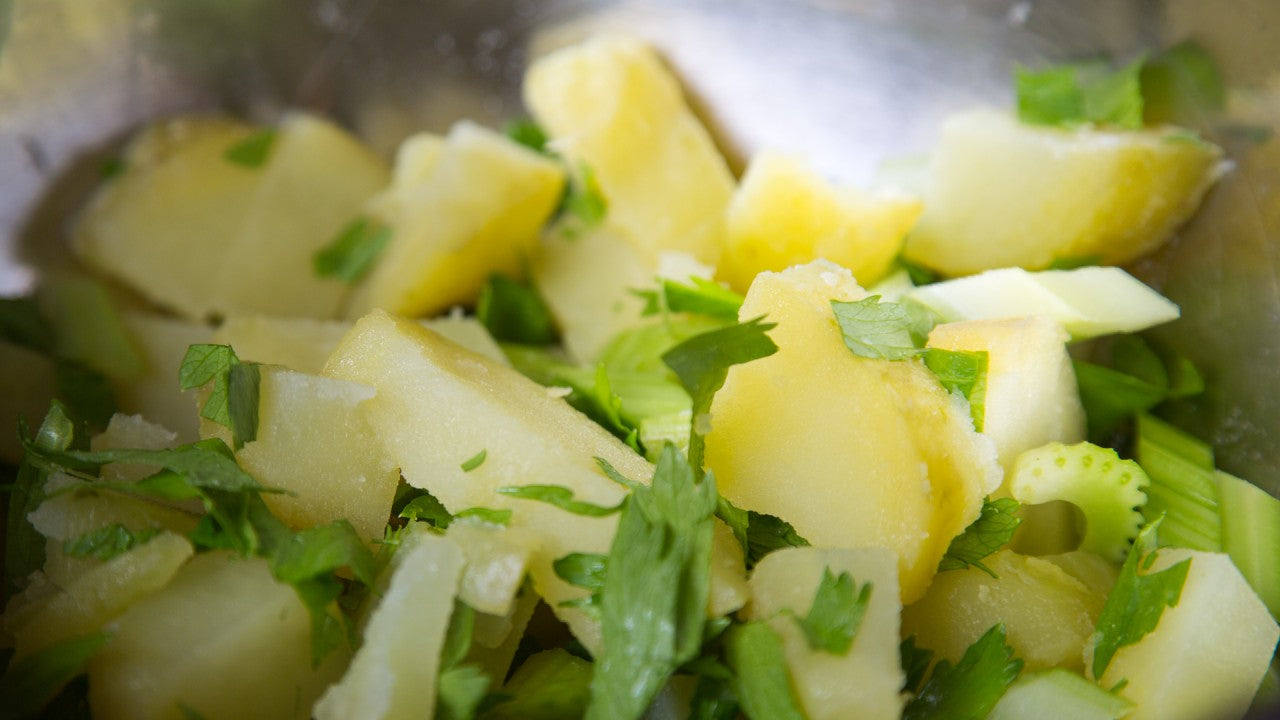 Schnell und einfach vorzubereiten – aus langweiligem Kartoffelsalat machen wir eine mediterrane Köstlichkeit!