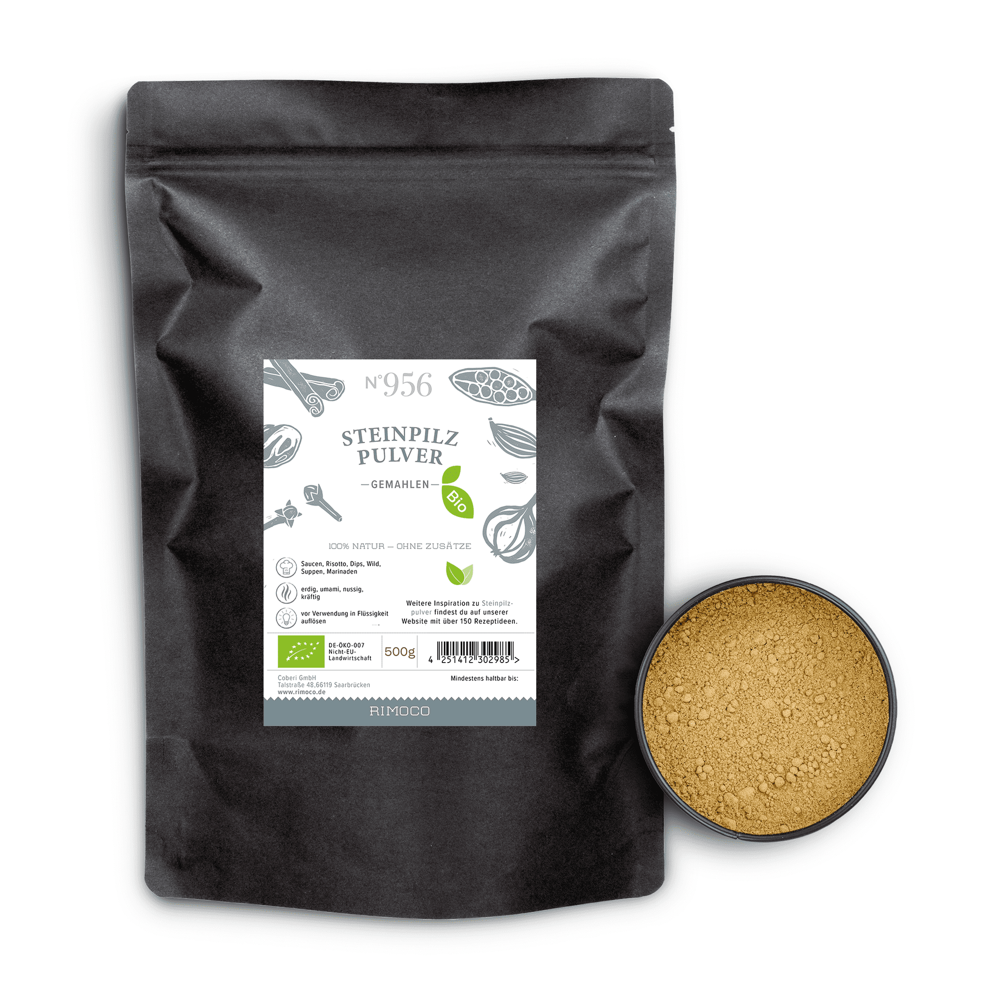 Die Verwendungsmöglichkeiten unseres Bio Steinpilzpulvers sind erstaunlich vielfältig: Du kannst damit alle Arten von (Pilz)Cremesuppen, Soßen, Brühen oder Marinaden abschmecken. Aber auch in selbst gemachten Aufstrichen ist das Pulver der absolute Hit! Das Bio Steinpilzpulver gehört selbstverständlich auch in jedes gute Pilz-Risotto – und wir versprechen dir: Das Aroma wird dich glatt umhauen! Da macht es auch nichts, wenn du statt frischer Steinpilze auf günstigere Pilzsorten ausweichst. Champignons oder Kräutersaitlinge zum Beispiel sind wesentlich leichter zu besorgen. Den milderen Geschmack gleichst du einfach mit einer Prise von unserem Zauberpulver aus – deine Gäste werden sich fühlen wie im Gourmetrestaurant! Wildgerichte aller Art profitieren ebenfalls sehr von dem intensiven Steinpilzaroma: Versuche dich doch zum Beispiel an unserem Hirschkalbsrücken mit Pflaumen-Portwein-Sauce und Süßkartoffel-Rösti. Das Pulver bindet die dunkle Sauce und harmoniert perfekt mit der Süße der Pflaumen und dem edlen Fleisch.