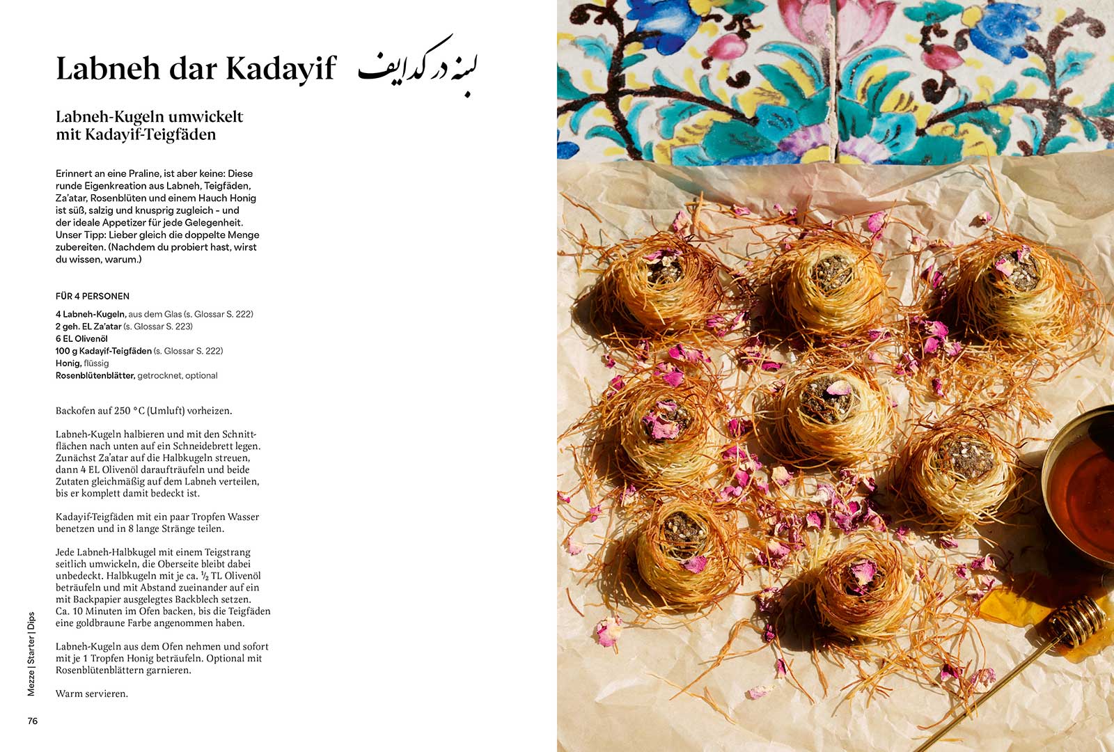 Kochbuch Hier fließt die Liebe – Persische Küche | Farbenfroh kochen und genießen ist das Motto dieses Kochbuchs. Entdecke cremige Mezze, knackige Salate und viele Klassiker der iranischen Küche.  Verwöhne dich und deine Liebsten mit Köstlichkeiten wie Safranreisküchlein gefüllt mit Auberginen und Berberitzen, Schnittlauch-Frittata mit Ricotta und Sumach oder Hähnchenfilet mit Karotten in Orangen-Granatapfel-Sauce. Spätestens mit verführerischen Desserts wie Safran-Reispudding mit Mandeln und Rosenwasser oder gefüllten Aprikosen mit Honig-Mascarpone und Pistazienstiften wirst du alle Herzen im Sturm erobern.