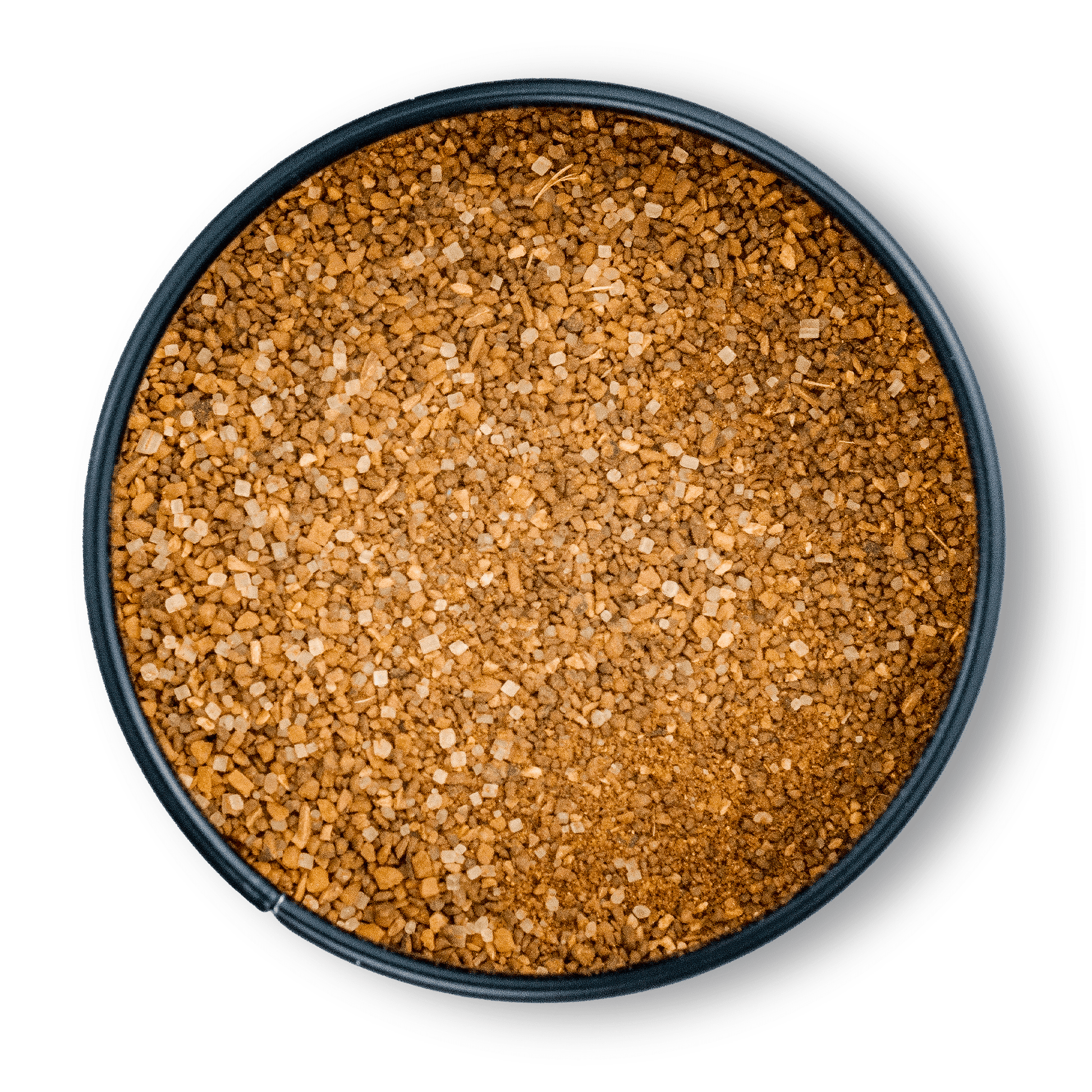 Kaffee als Gewürz? Sehr wohl. Neben der Verwendung zur Zubereitung von köstlichen Heißgetränken eignet sich Kaffeepulver zur Verwendung in einer ganzen Reihe von Gewürzkombinationen, um Röstaromen, erdige Töne und tiefgehende Geschmacksnoten zu erzielen. Ganz ähnlich verhält es sich mit dem Einsatz von Kakao, der üblicherweise auch zum Herstellen von Heißgetränken eingesetzt wird. Da beim Erhitzen der Bohnen eine ganze Palette von Röstaromen entstehen, lässt auch er sich perfekt zum Würzen verwenden (siehe auch unser ‚Mole Poblano‘). Wenn du die Gewürzdose öffnest, wird dich ein herrlich nussiger, röstiger Duft empfangen. Kakao verleiht unserer Gewürzmischung leicht schokoladige, bittersüße Anklänge und schmeckt im Abgang leicht adstringierend. Knoblauch und Paprika bringen würzig-scharfe Noten mit, die Kraft in das Produkt bringen sollen. Während die Schärfe des Knoblauchs sich beim Erhitzen verflüchtigt, bleiben die süßlich-würzigen Komponenten von Knoblauch und Paprika erhalten. Gemahlene Chilis verleihen der Mischung Schärfe. Last but not least haben wir unserer Mischung Kreuzkümmel beigefügt, der orientalisch riecht und schwer, würzig-süß schmeckt. Kreuzkümmel passt hervorragend zu Lamm, Huhn und Fisch und darf als Zutat in vielen Länderküchen nicht fehlen. Dazu ein wenig Vollrohrzucker, der nach dem Zentrifugieren von dem Großteil der Melasse getrennt wurde. Er gehört zu den umraffinierten Zuckerarten. Daher schmeckt er noch leicht nach Karamell, etwas malzig und erinnert einstweilen an den Geschmack von Lakritz. Rohrohrzucker, der auch Muscovade genannt wird, passt daher perfekt zu pikanten Röstgerichten und harmoniert peferkt mit geschmorten Zwiebeln. Daneben sorgen bestes Meersalz und edler Pfeffer für die Grundwürze, die nicht fehlen darf.