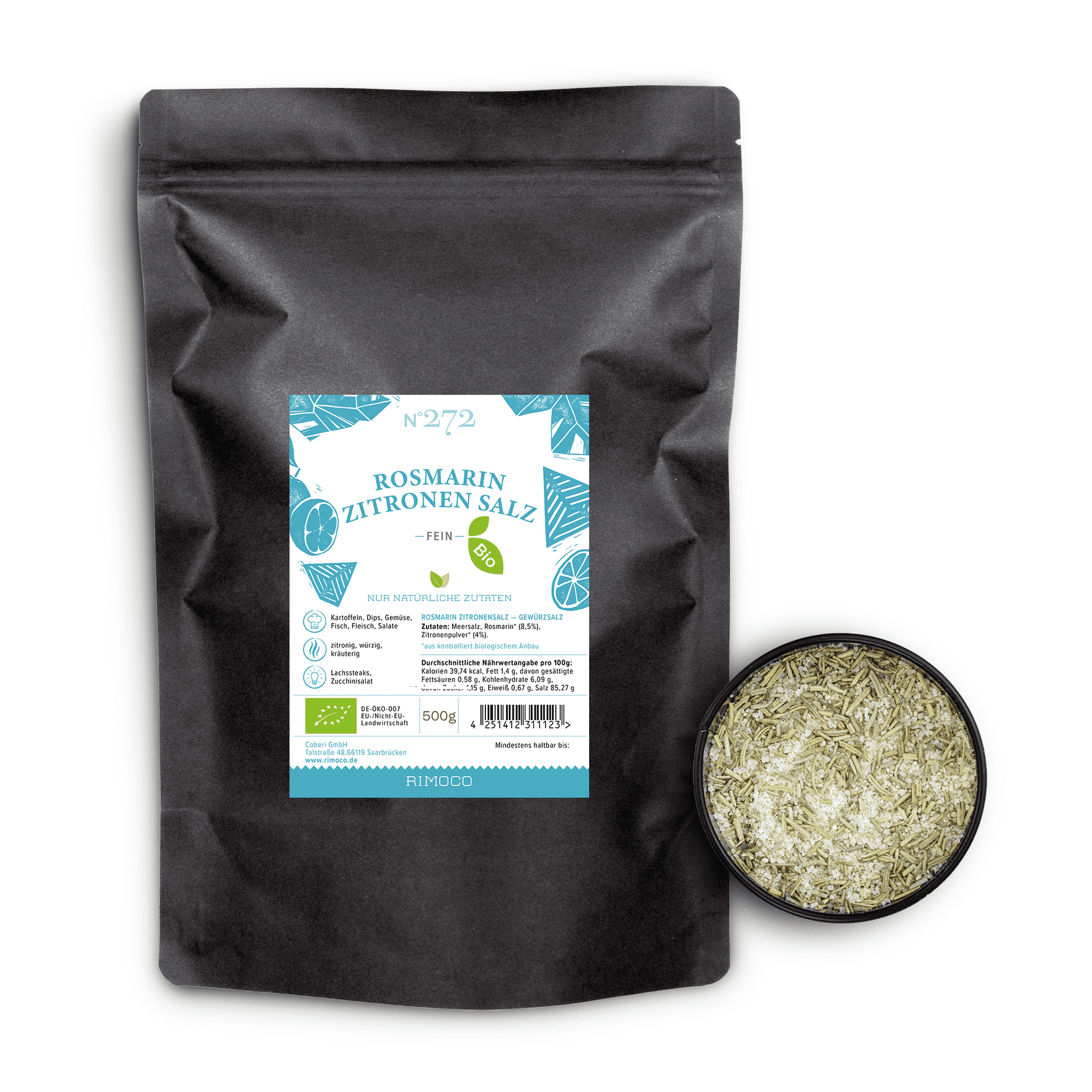 Meersalz, Zitronenfruchtpulver* und Rosmarin*.