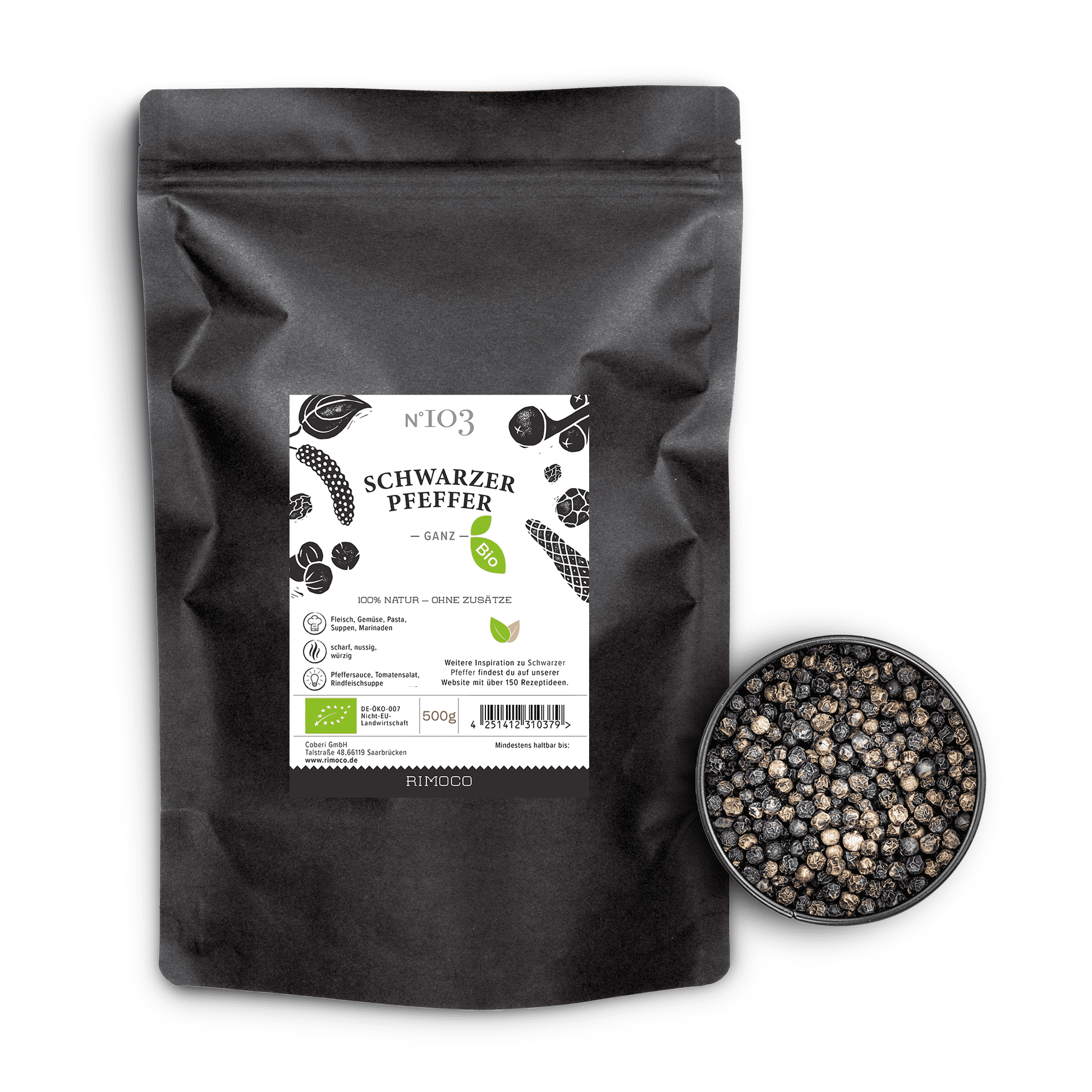 Unser Schwarze Bio Pfeffer stammt aus einem ökologischen Anbau. Er hat ein abgerundetes, trotzdem scharfes Aroma mit einer leichten Zitrusnote. Sein volles Aroma entfaltet er, wenn er frisch gemahlen aus der Gewürzmühle kommt. Die Körner können aber auch ungemahlen als einzelne Körner beispielsweise für das Kochen von Saucen verwendet werden.
