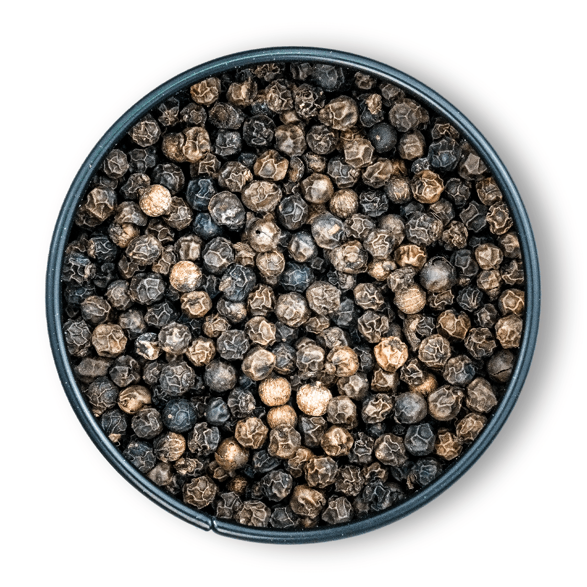 • Schwarzer Pfeffer wird unreif geerntet und fermentiert, wodurch er sein kräftiges, tiefes Aroma und die dunkle Farbe entwickelt.