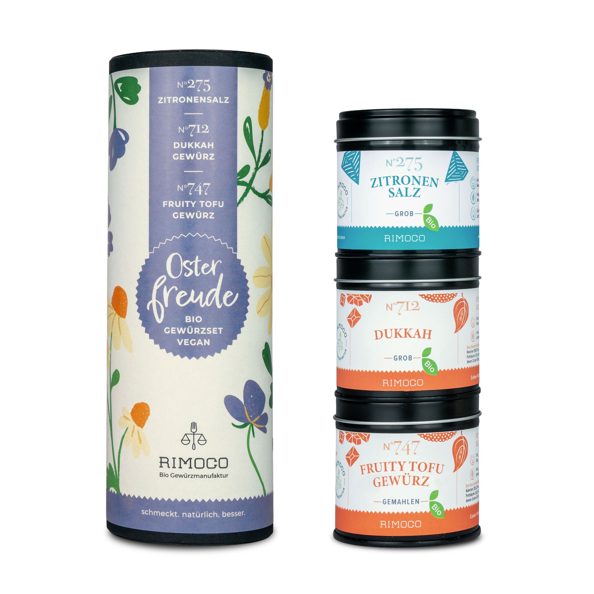 Ostern ist nicht nur ein Fest für traditionelle Gerichte – es ist auch die Zeit der frischen Frühlingsküche. Knackiges Gemüse, geröstete Nüsse, zitronige Aromen und leichte Gerichte stehen jetzt besonders im Mittelpunkt. Genau dafür wurde das Geschenkset Osterfreude zusammengestellt. Drei Gewürze aus der Rimoco Manufaktur, die perfekt zu einer modernen, pflanzenbasierten Osterküche passen.