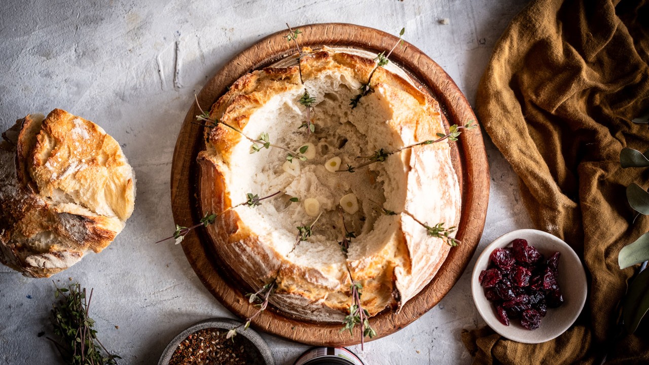 Achte darauf, den Boden beim Aushöhlen intakt zu lassen. Dadurch bleibt das Brot saftig und hält die Käsecreme gut im Inneren. Ein Laib aus Sauerteig oder Bauernbrot eignet sich besonders gut, weil er im Ofen stabil bleibt und nicht durchweicht.